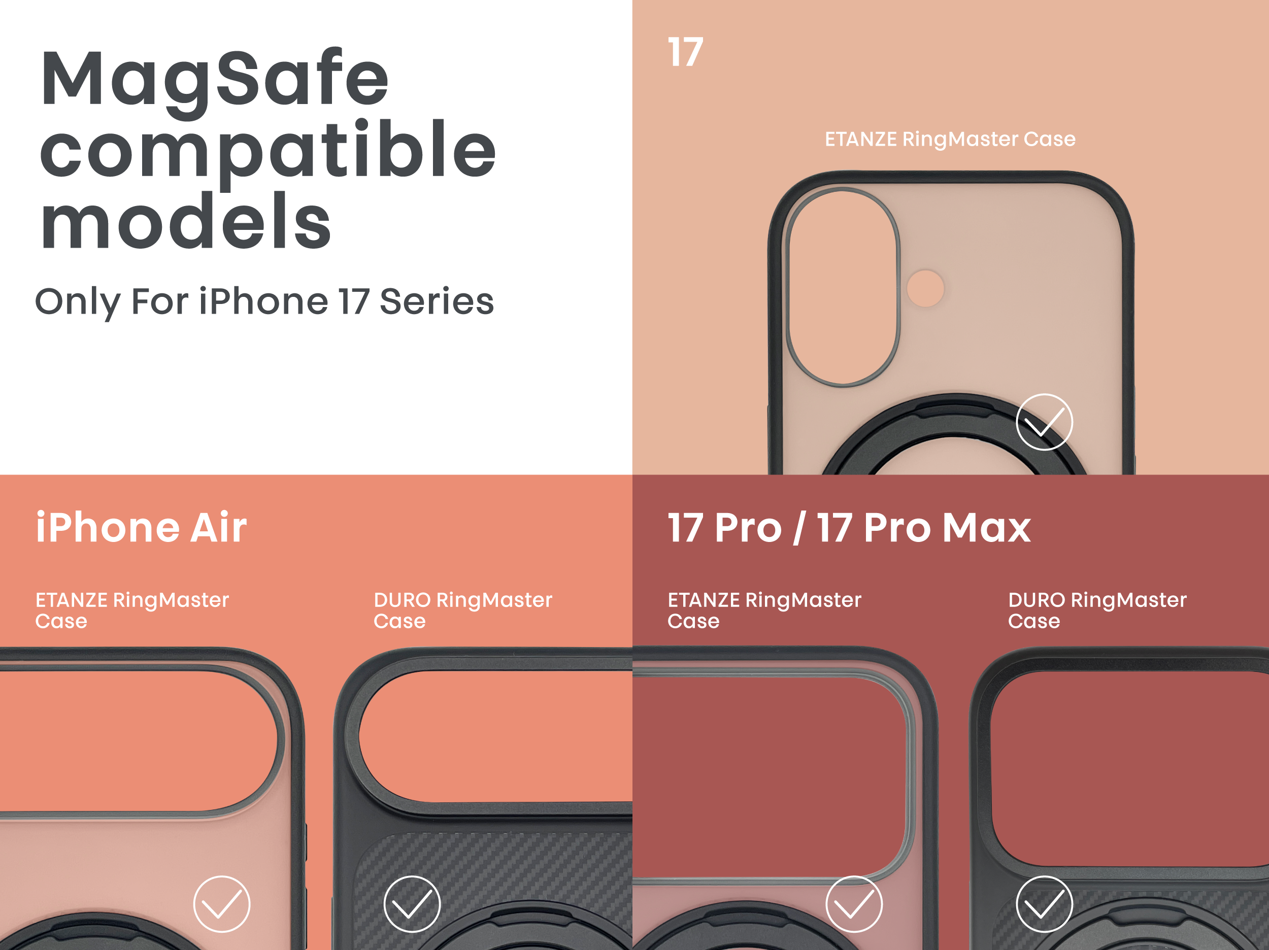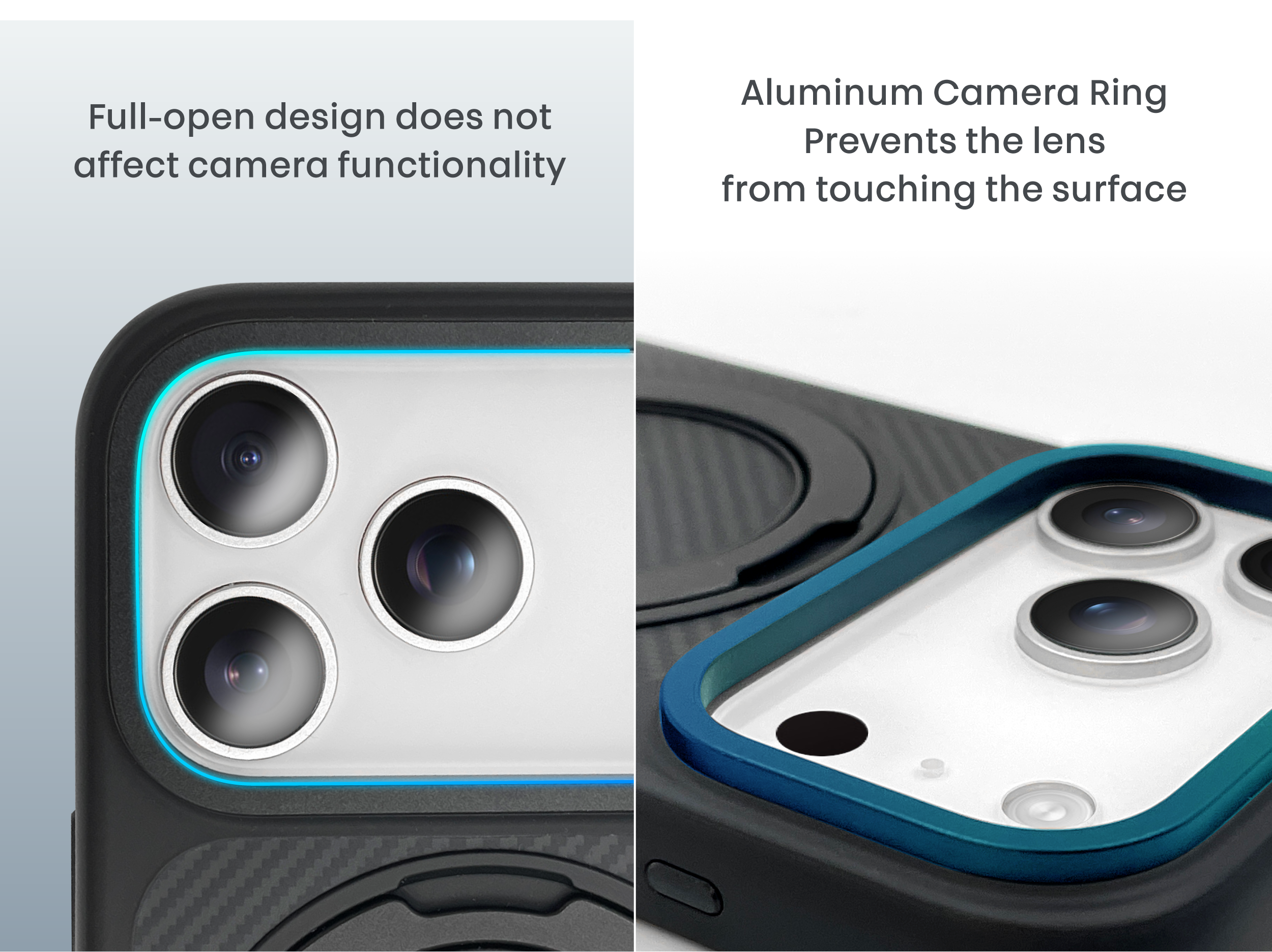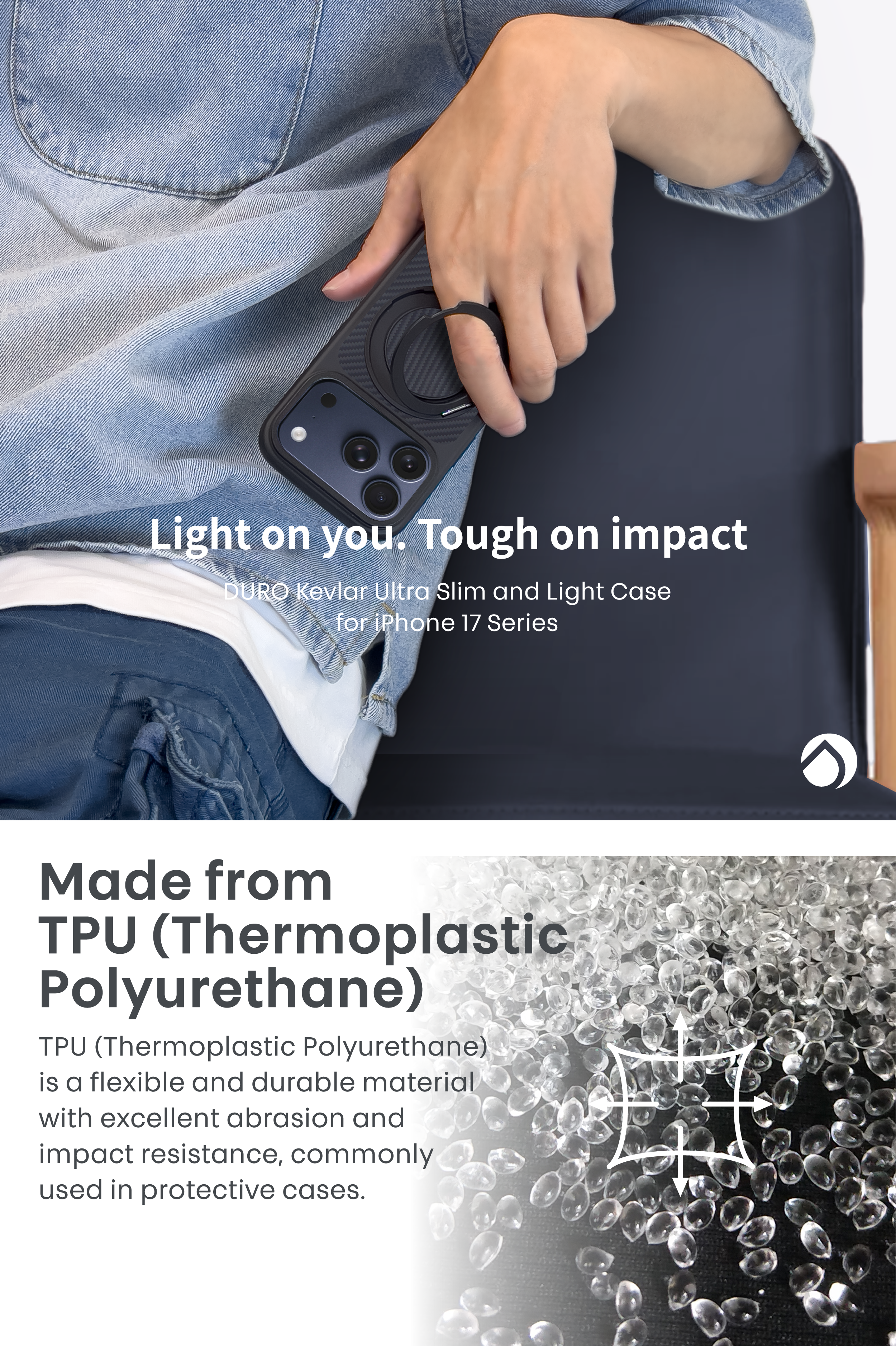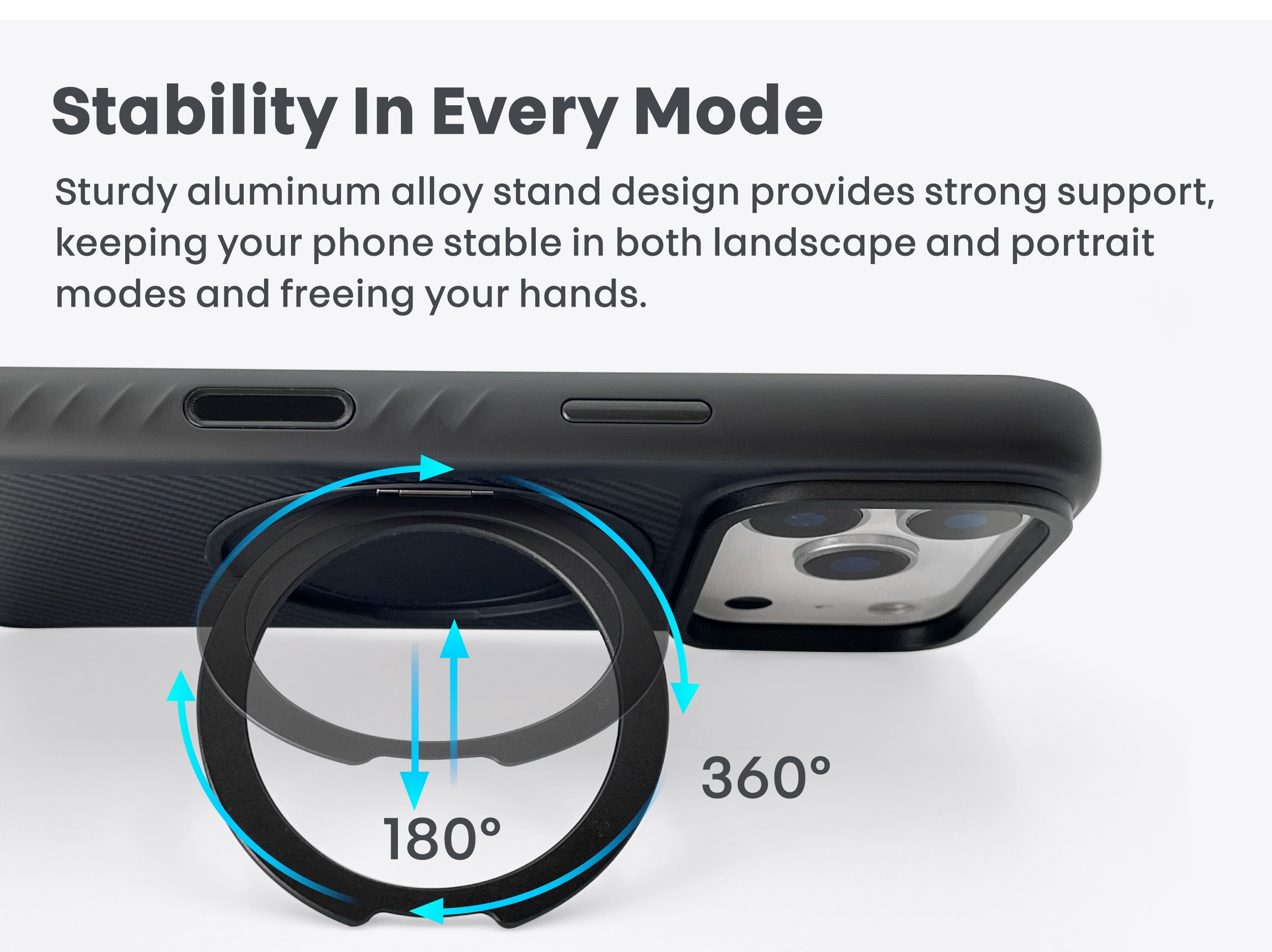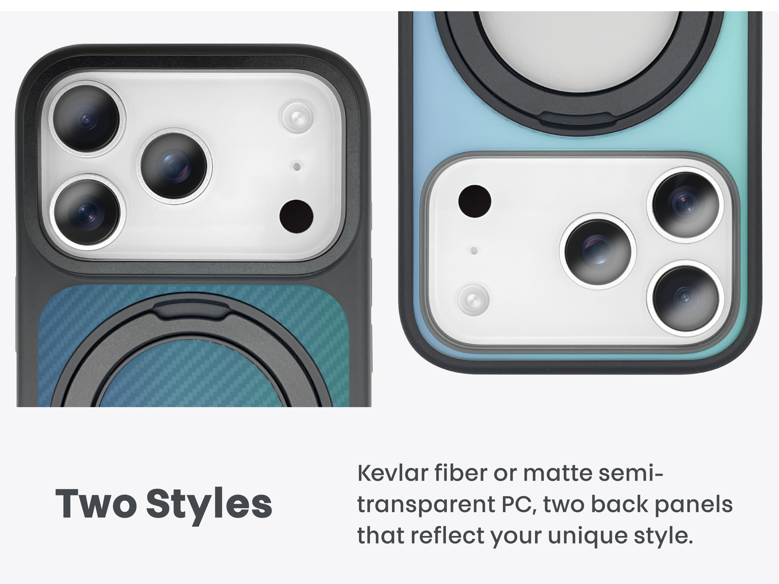 Multifunctional protective case for iPhone 17 series, featuring Kevlar fiber material, shock-resistant frame, MagSafe magnetic ring, and a 360-degree stand with ring holder function.