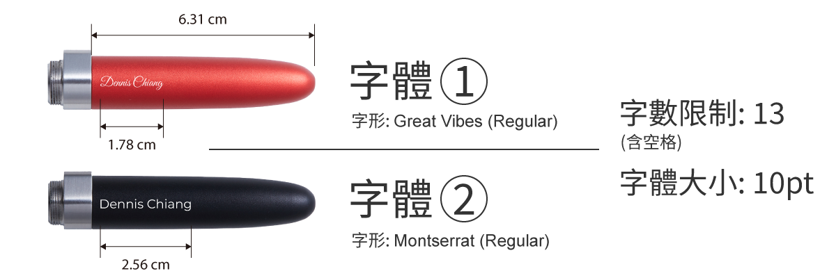 * 請務必於備註欄寫下您要的字體以及要雕刻的英文字(含空格限13字內)